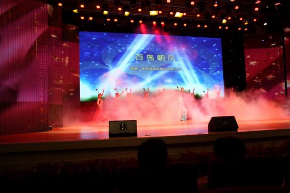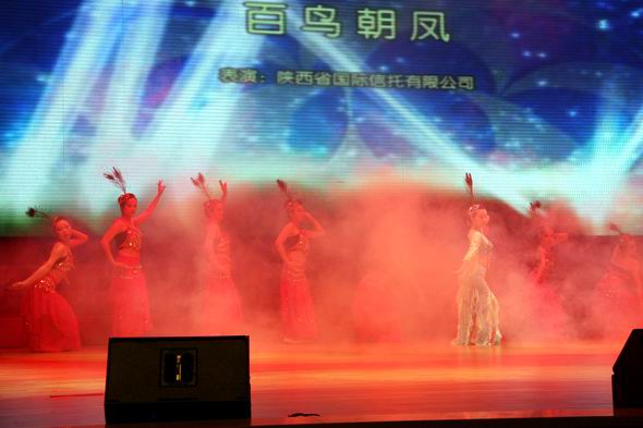 陜西銀行業(yè)慶祝建黨90周年文藝晚會于6月30日在西安市高新區(qū)管委會千人會堂隆重舉行。我公司員工演出的舞蹈節(jié)目《百鳥朝鳳》參加了演出。《百鳥朝鳳》寓意全國各族兒女心向共產(chǎn)黨,用藝術(shù)的手法表達(dá)華夏兒女對黨的熱愛,也充分展現(xiàn)陜國投的公司風(fēng)采和員工的精神風(fēng)貌。