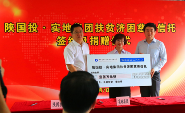 7月7日,陜國投·實(shí)地集團(tuán)扶貧濟(jì)困慈善信托在廣州市民政局舉行了簽約儀式及捐贈(zèng)儀式,本筆信托規(guī)模2000萬元,首期落地金額100萬元,資金將用于廣州“長者飯?zhí)谩坌牟汀钡裙骓?xiàng)目。廣州市民政局副局長韋錦堅(jiān)、廣州市慈善會(huì)執(zhí)行秘書長張偉、實(shí)地集團(tuán)副總裁富元春、實(shí)地集團(tuán)融資管理中心副總經(jīng)理章曉亮、公司副總裁兼董秘李玲、廣州業(yè)務(wù)部總經(jīng)理俞裕明等出席了簽約及捐贈(zèng)儀式。