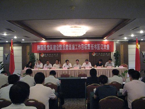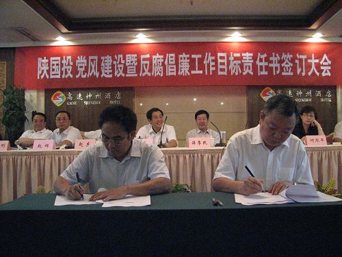 2007年8月24日下午,公司在高速神州酒店召開了陜國投黨風建設(shè)暨反腐倡廉工作目標責任書簽訂大會。