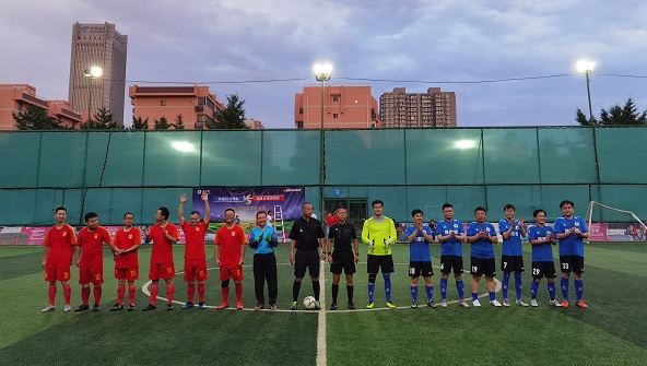 賽前高新地區(qū)突降暴雨,未能影響雙方球員比賽的熱情。公司黨委委員、工會主席祁鎖鋒,西安和其光電公司董事長張文松、常務(wù)副總裁樊維濤蒞臨比賽現(xiàn)場給隊員加油鼓勁。張文松親自上陣擔(dān)任中鋒,樊維濤堅守大門。雙方場上隊員個個精神飽滿、斗志昂揚。